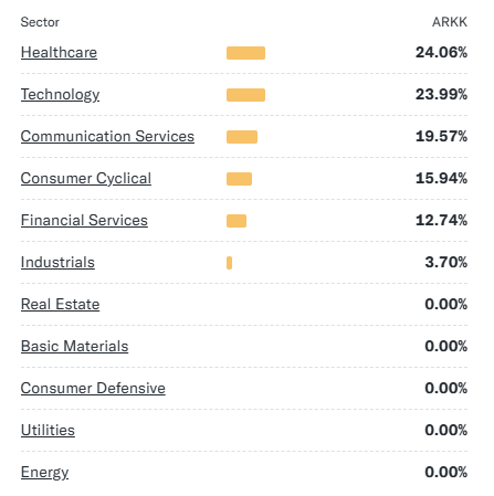 ARKK ETF의 투자는 다음과 같은 혁신 테마를 중심으로 구성됩니다: