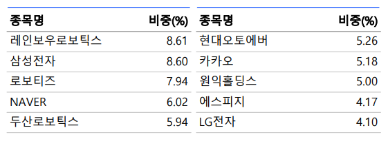 - 특히 Neuromeka, Rainbow Robotics, Doosan Robotics 등 로봇 관련 기업의 주가가 ETF 수익률을 좌우합니다.