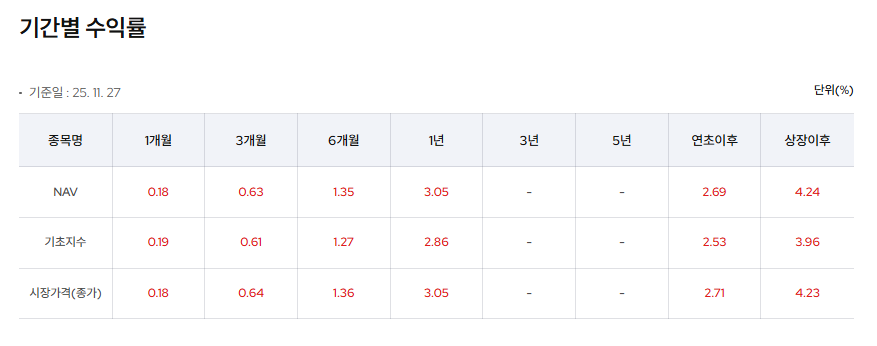 3. 기관 투자자 선호도 올해 들어 1조 6,616억원이 흘러들어가며 전체 ETF 중 가장 많은 자금 유입을 기록했습니다. 단기 자금을 운용하는 기관 투자자들의 문의가 쇄도하고 있습니다.