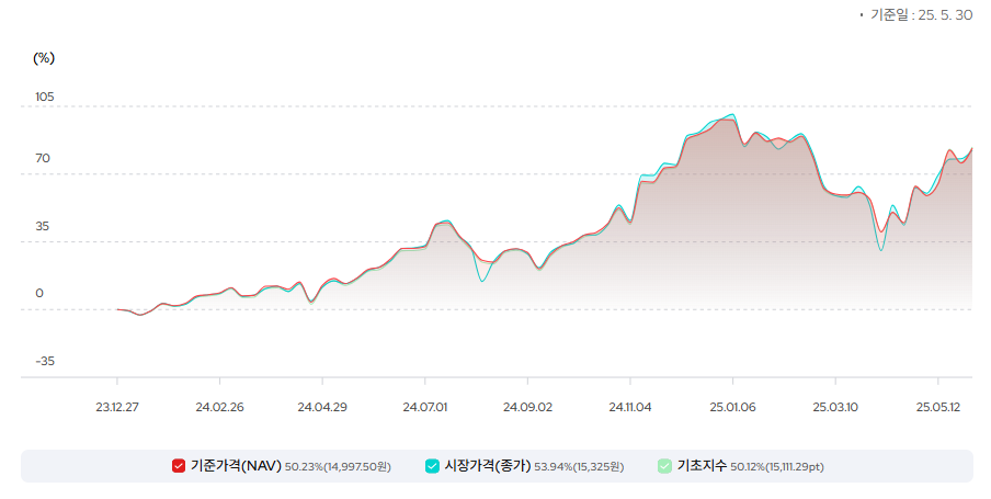 | 2024년 | 98.6% | 약 25% | 약 22% | 국내 ETF 수익률 1위 |