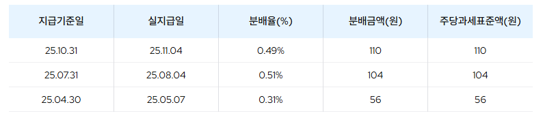 - 최근 분배금 지급 현황