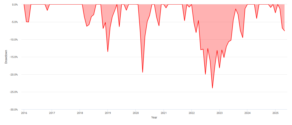 - 최대 낙폭(역사적): 약 55% (2008-2009 금융 위기)