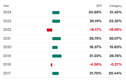 - 1년 성과(2024년 5월 기준): 약 24%의 수익률