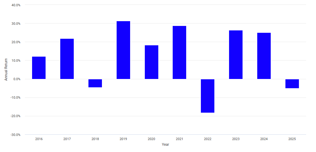 2022년에는 글로벌 인플레이션과 금리 인상으로 인해 마이너스 수익률을 기록했으나, 2023년 이후 강한 회복세를 보이고 있습니다.